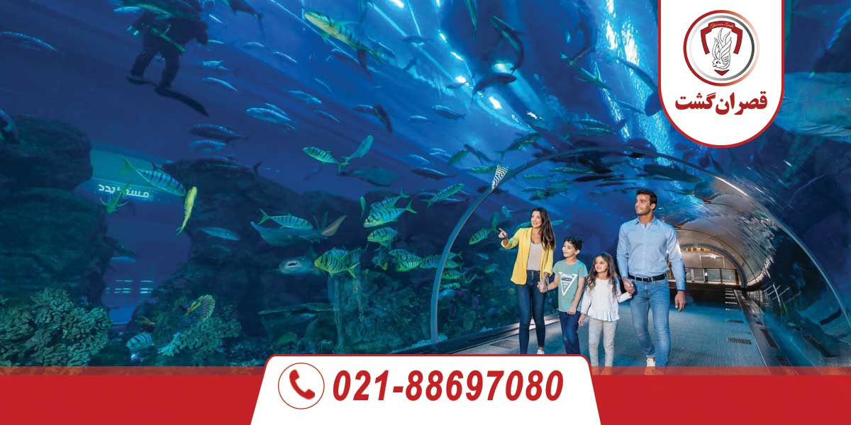 آکواریوم بزرگ شهر دبی با حدود 10 میلیون لیتر آب پر شده است و در این آکواریوم 33000 هزار نوع جانور آبی دیده می شود و مهم ترین قسمت این آکواریوم تونل این است که 51 متر طول، 20 متر عرض و 11 متر ارتفاع دارد و شما حس خواهید کرد که دقیقا زیر آب قرار دارید.
