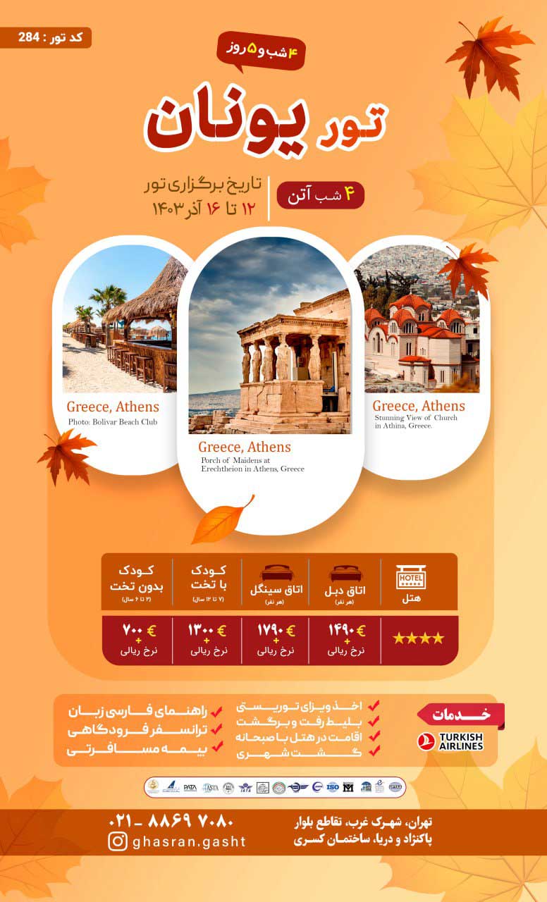 قصران گشت با سال ها تجربه در زمینه اخذ ویزای شینگن و همچنین برگزاری تور اروپا در خدمت شما عزیزان است. چنانچه قصد سفر به کشور یونان و شهر آتن را دارید جهت هرگونه مشاوره در خصوص دریافت ویزای شینگن با شماره 02188697080 تماس حاصل فرمایید تا از مشاوره رایگان کارشناسان مجرب ما برخوردار شوید.