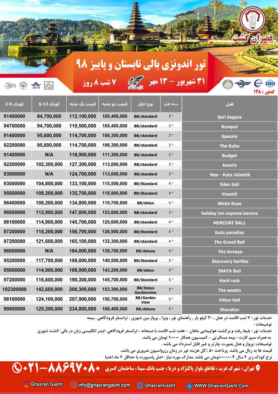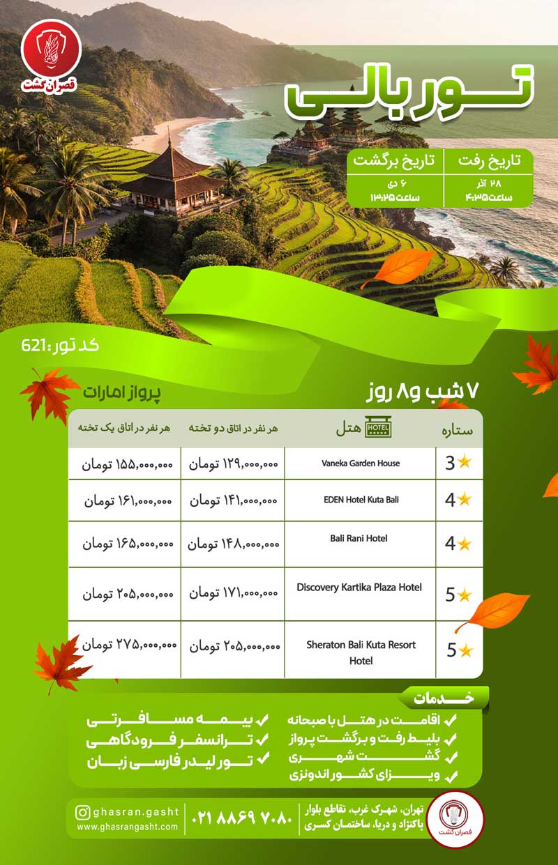 وقت آن رسیده که چمدانها را ببندید و خود را برای یک ماجراجویی دلپذیر در بالی آماده کنید. قصران گشت اینجاست تا شما فقط به لذتبردن از سفرتان فکر کنید!