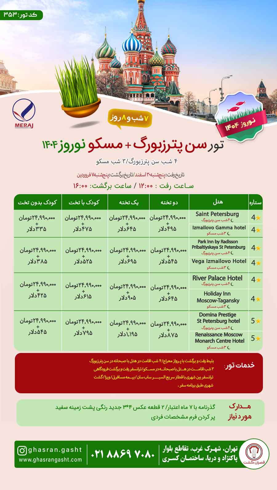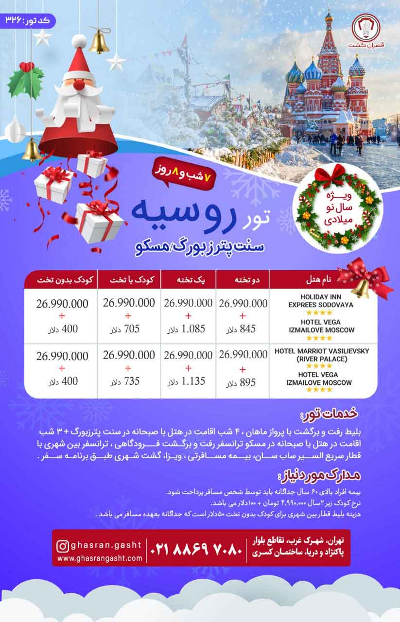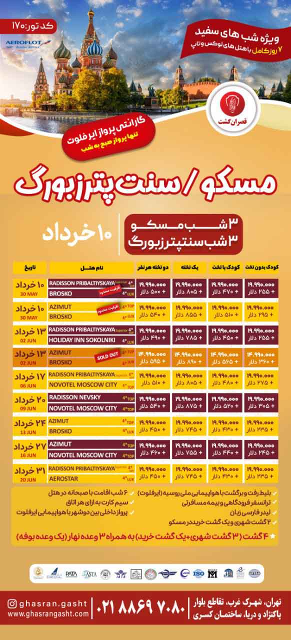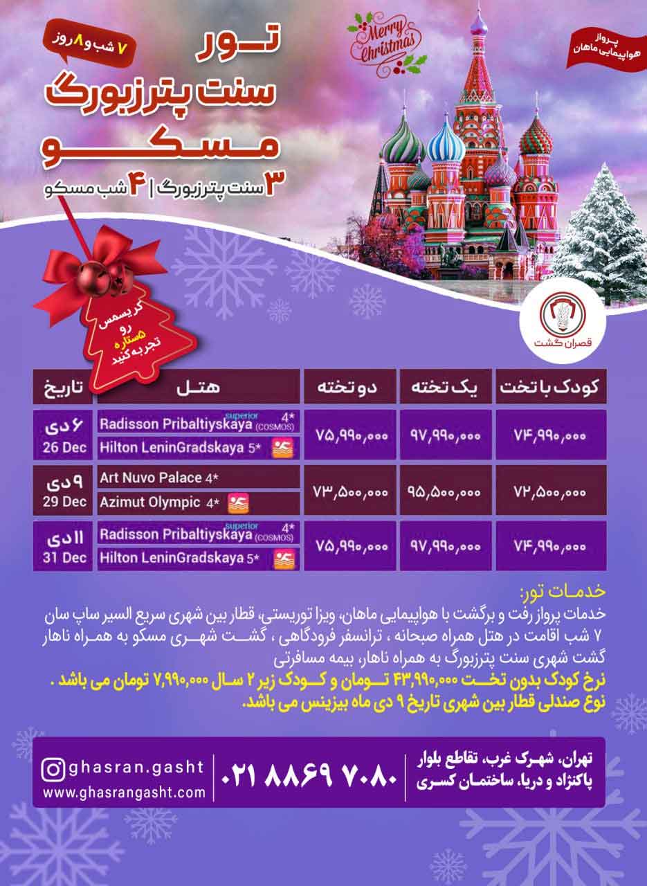 قصران گشت با سال ها تجربه در زمینه اخذ ویزا و همچنین برگزاری تور در خدمت شما عزیزان است. چنانچه قصد سفر به کشور روسیه و استفاده از تور روسیه را دارید جهت هرگونه مشاوره با شماره 02188697080 تماس حاصل فرمایید تا از مشاوره رایگان کارشناسان مجرب ما برخوردار شوید.
