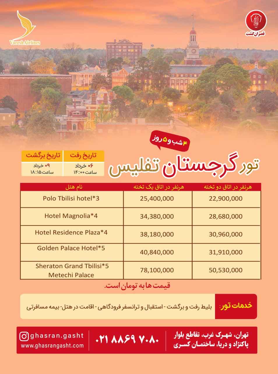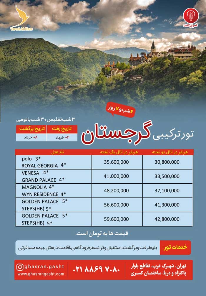 برای اخذ انواع تورهای اروپایی و تور گرجستان با کارشناسان ما در قصران گشت تماس بگیرید. 88697080