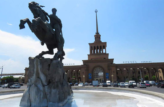 ایروان در دامنه کوه آرارات قرار گرفته است و روز هرازدان از نزدیکی این شهر عبور میکند. خط راه آهن ایروان بسیار گسترده است و انشعابات بسیاری دارد که مهمترین آن اتصال راه آهن ارمنستان به گرجستان است. هزینه های سفر پایین به این شهر و کوتاهی مسافت هر ساله مسافران زیادی را از ایران به ارمنستان راهی می کند.