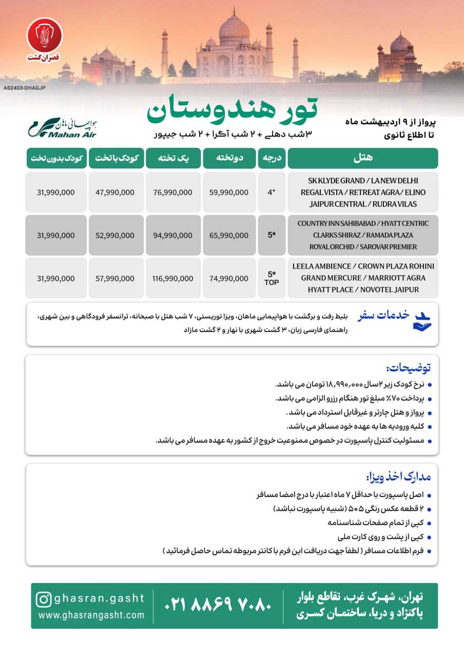 - برای سفر به هند باید ویزای هندوستان دریافت کنید تورهای هند قصران گشت سفری بی نظیر را برای شما فراهم می کند.