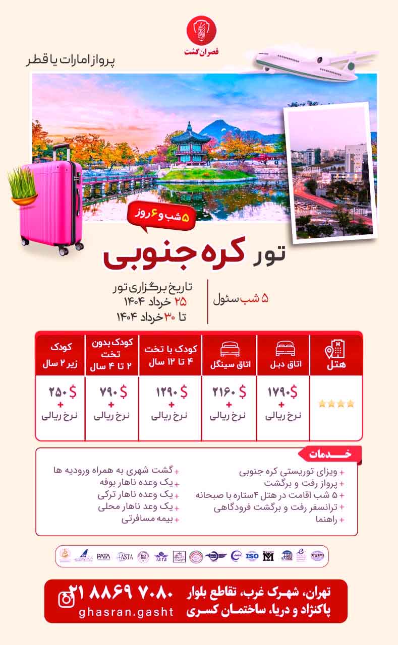 اطلاعات کلی اطلاعات کره جنوبی پایتخت : سئولواحد پول : وون کرهٔ جنوبیزبان رسمی : کرهایشهرهای مهم : سئولجمعیت : ۵۳٬۶۳۷٬۰۰۰ نفر اشتراک گذاری در شبکه های اجتماعی