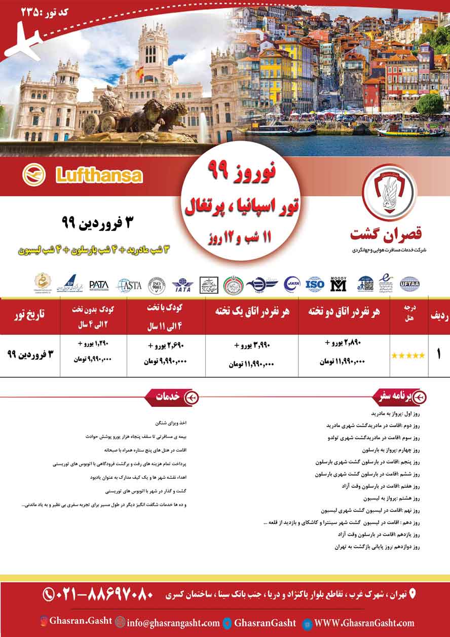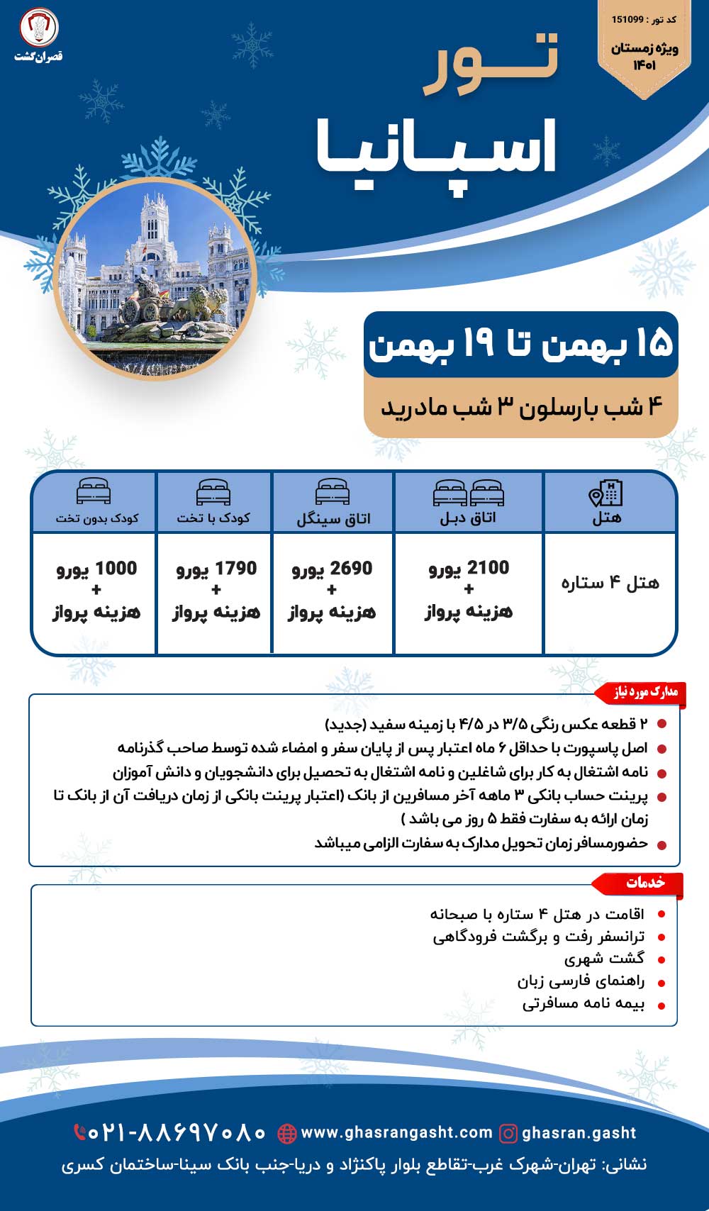 آوازه مناظر طبیعی و کوهستانی اسپانیا به گوش مردم در سراسر دنیا رسیده است. کشور اسپانیا در جنوب غربی اروپا یعنی شبه جزیره ایبری واقع شده است که بعد از چین و ایتالیا، سومین کشور میراث جهانی یونسکو به حساب می آید. اسپانیا از طرف شرق و جنوب با دریای مدیترانه، از شمال و شمال شرقی با کشور زیبای فرانسه، آندورا و خلیج بیسکای و از غرب و شمال غربی با پرتغال و اقیانوس دیدنی اطلس همسایه است.