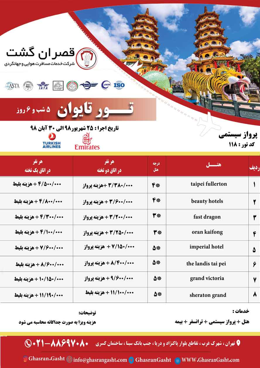 - رزواسیون هتل در کشور تایوان.