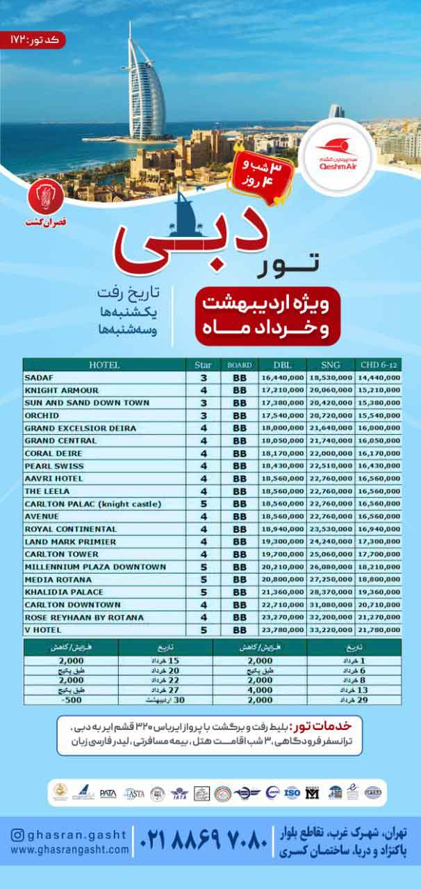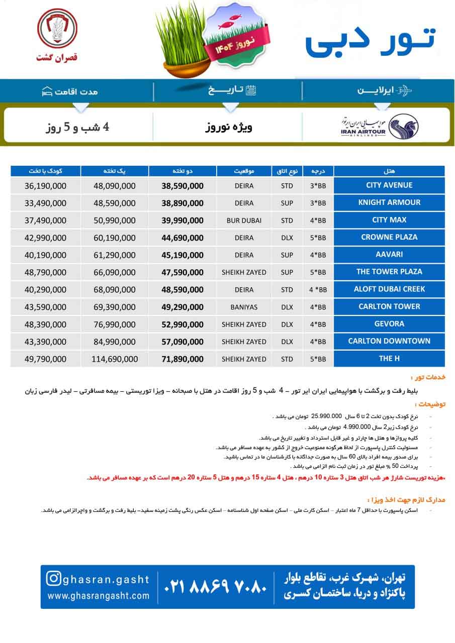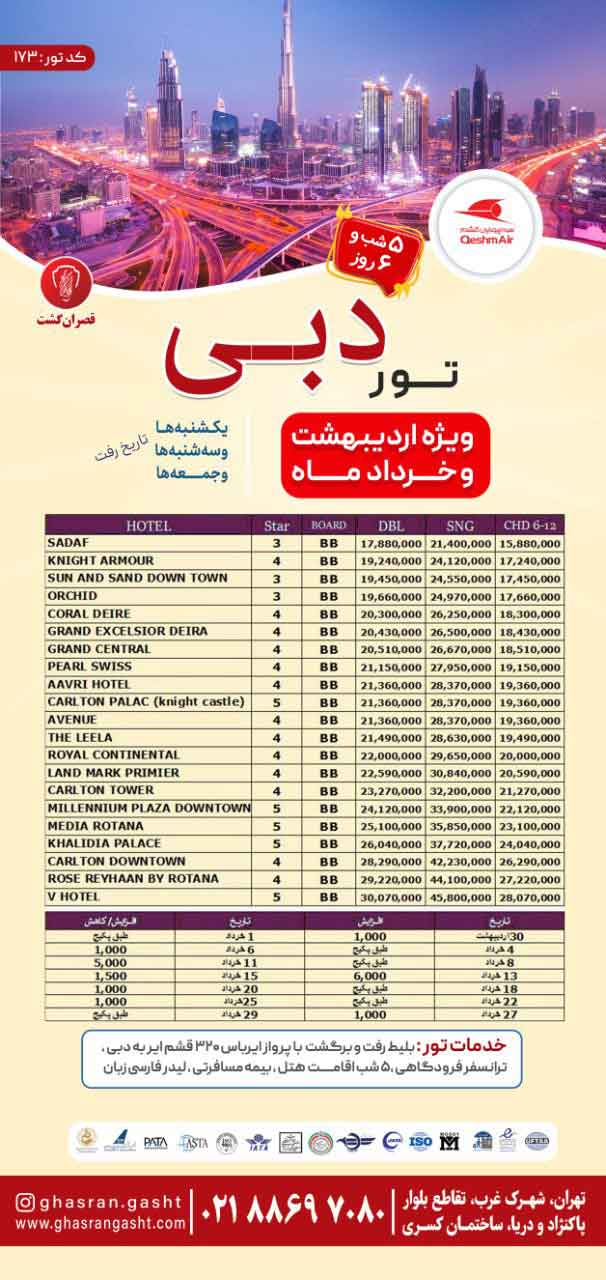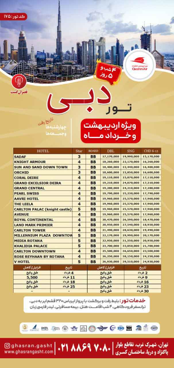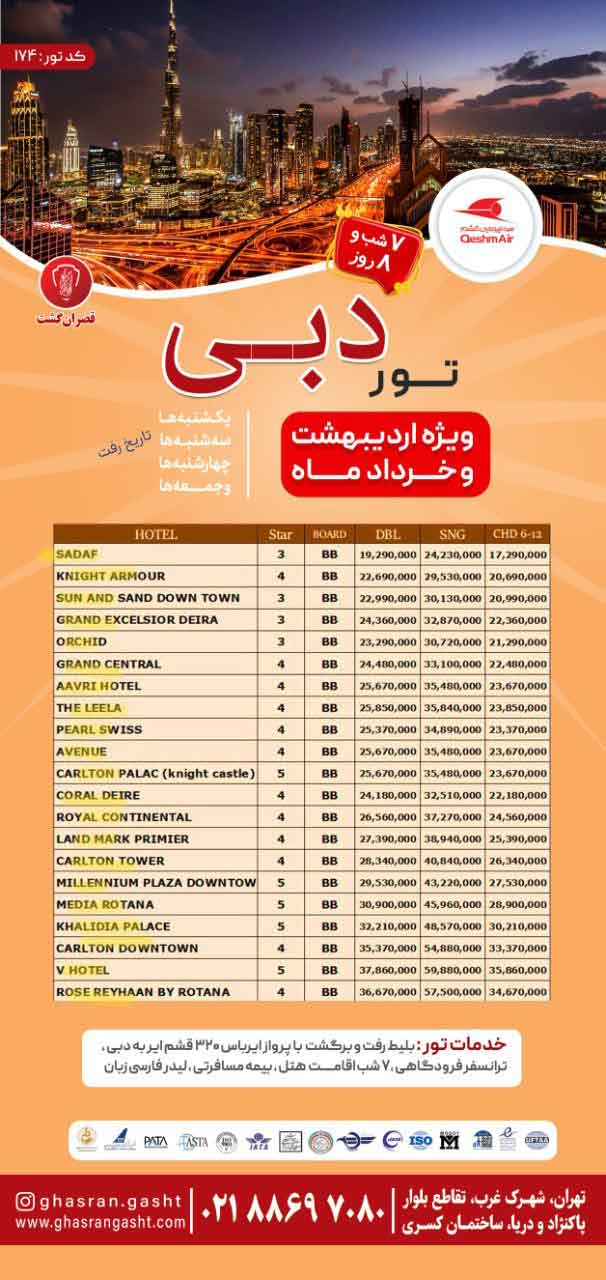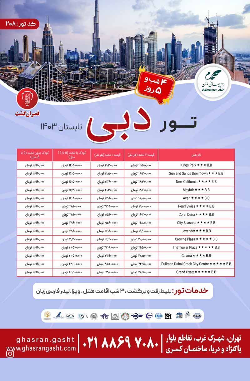 قصران گشت برگزار کننده انواع تورهای دبی و تورهای اروپا در خدمت شما عزیزان می باشد.