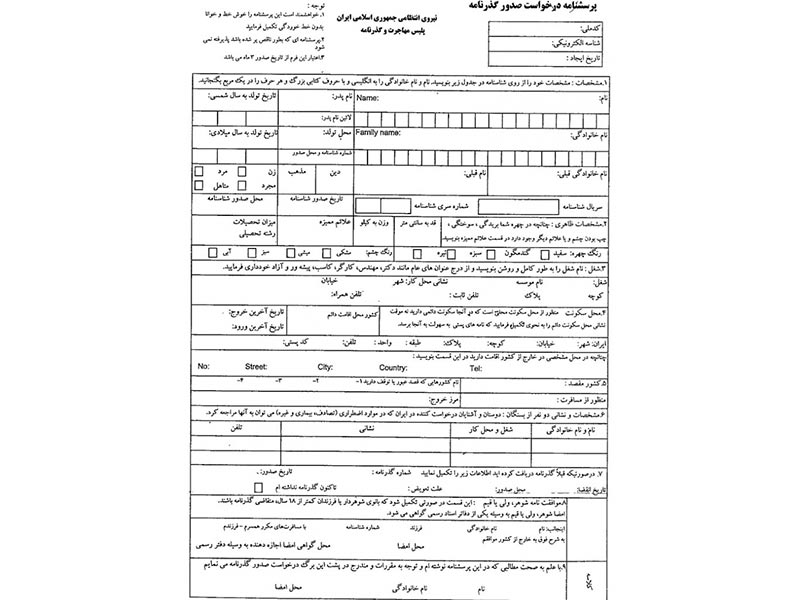 - بخشهای انگلیسی فرم حتماً باید با حروف بزرگ نوشته شود.