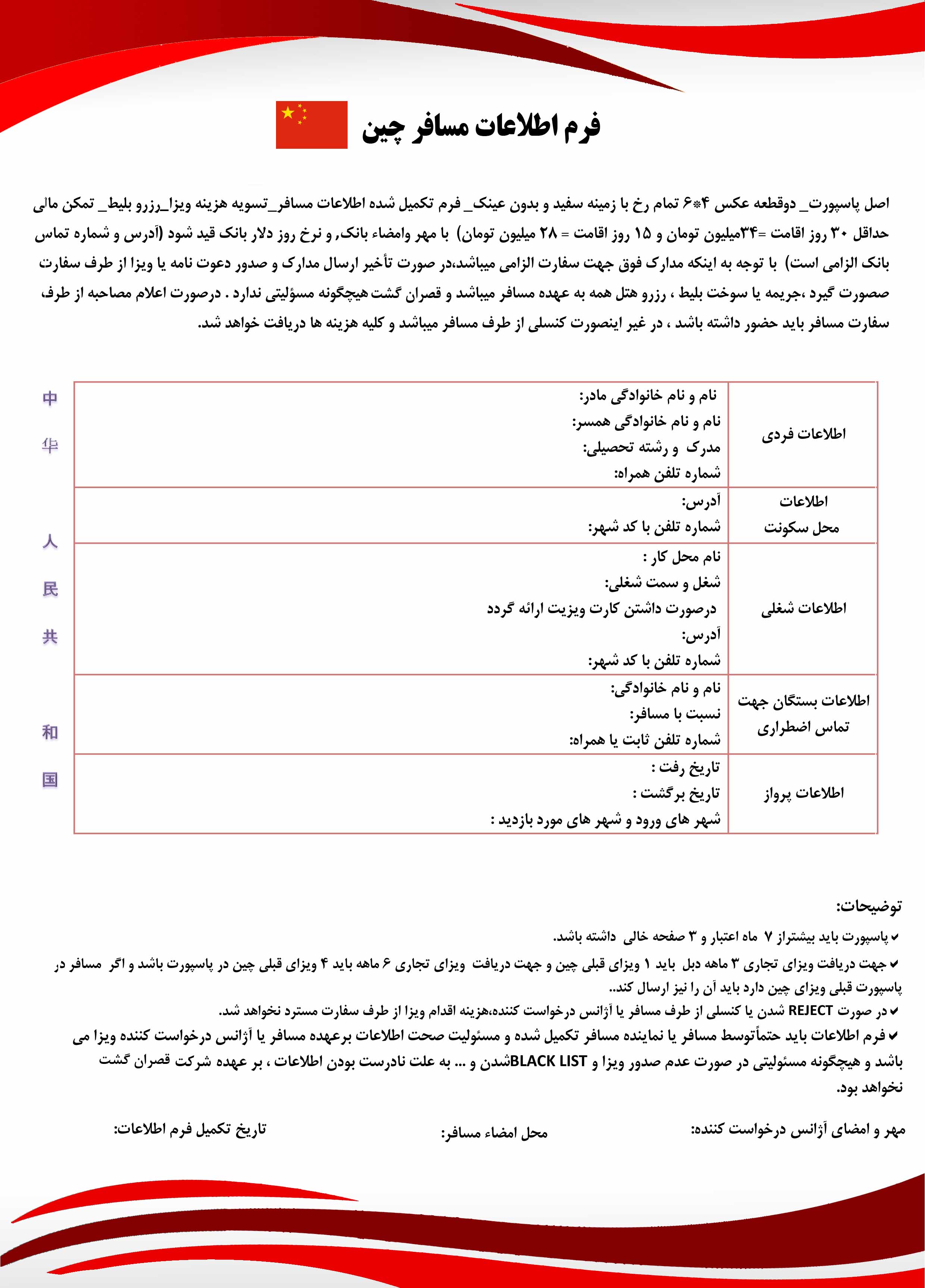 فرم سفارت امریکا کادری فرم مشخصات فردی چین فرم درخواست ویزااسترالیا