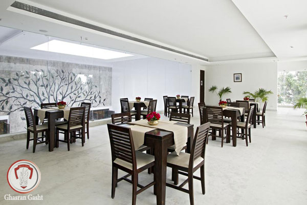 کبابی کنار استخر ، نمایش های رقص عامیانه راجستانی را نشان می دهد که غذاهای کباب پز لذت بخشی دارند. میهمانان می توانند از موسیقی زنده و نوشیدنی های خود در گالری هنر و تاک Blu Rooftop لذت ببرند. همچنین میهمانان می توانند یک شام آرام را در SORA ، رستوران پان آئینی با فضای آزاد بخورند.
