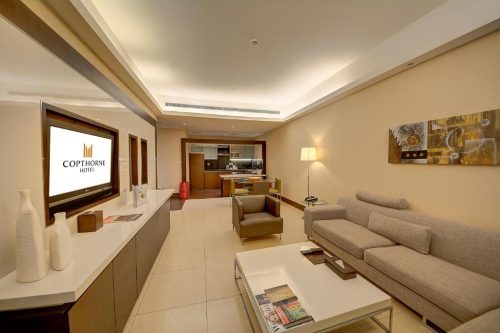 اتاق های هتل کوپتورن دبی دارای دکوراسیون مدرن و تلویزیون صفحه تخت هستند. علاوه بر بالکن خصوصی و وان جکوزی، اتاقهای لوکس دارای آشپزخانه کوچک و ناهارخوری نیز هستند.