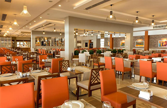 صبحانه، ناهار و شام به طور روزانه در بوفه رستوران سرو می شوند و انواع غذاهای ترکی و بین المللی برای مهمانان فراهم میشود. در طول روز می توانید بستنی، قهوه و کیک سفارش دهید. رستوران لاکارته انواع ماهی، غذاهای چینی و غذاهای بین المللی برای مهمانان فراهم می کند.