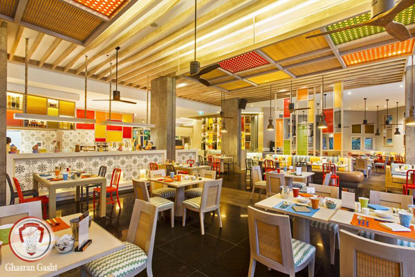 چارم تای غذاهای تایلندی را در اختیار مهمانان قرار میدهد و سام استیک را ارایه میدهد. انواع غذاهای ایتالیایی هم در ترازو موجود است.مهمانان همچنین برای غذاهای بین المللی  میتوانند به سی بریز کافه مراجعه کنند.