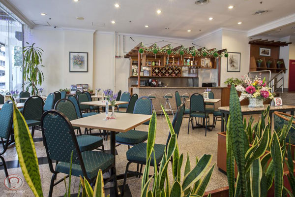 کافی شاپ با داشتن قاب های بزرگ شیشه ای که نور طبیعی زیادی در آن ایجاد می شود ، صبحانه را به صورت بوفه ارائه می دهد و انواع غذاهای آسیایی و قاره ای را سرو می کند. درنشیمن اتاق های میهمان می توانید از وعده های غذایی لذت ببرید.