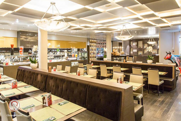 میتوانید از طریق رزرو کردن میز در رستوران های موونپیک و لس سایسنز از سرویس دهی مشهور سویٔسی لذت ببرید. دو رستوران و بار گزینه های مختلفی از غذاهای لذیذ و تازه مناسب فصل ارایٔه میدهند. این هتل ۱۸ سالن و یک تراس مشرف به دریاچه برای رویداد ها و جلسات و مراسم عروسی به همراه بخش خوراکی حرفه ایی برای پذیرایی دارد. اینترنت رایگان در سراسر هتل قابل دسترس است.