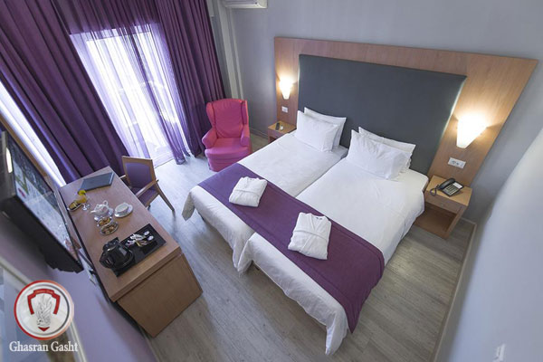 اتاقهای هتلپلیس گرند دارای مبلمان زیبا و حمام سنگ مرمر، تهویه هوای مطبوع، لپ تاپ و تلویزیون هستند. برخی از اتاق ها دارای یک بالکن با منظره ای از تپه لیکابتوس و آکروپلیس هستند.