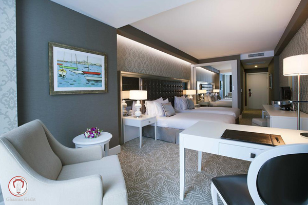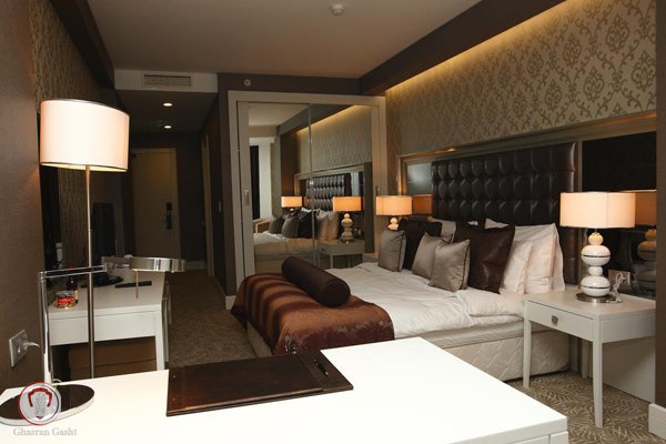 اتاقها: اتاقهای هتل در طبقهی 3 تا 17 قرارگرفتهاند. از 325 اتاق مجهز هتل، 52 اتاق استاندارد “ای”، 73 اتاق استاندارد “بی”، 115 اتاق سوپر، 62 اتاق سوییت جونیور، 13 سوییت اجرایی و 1 رویال سوییت هستند.