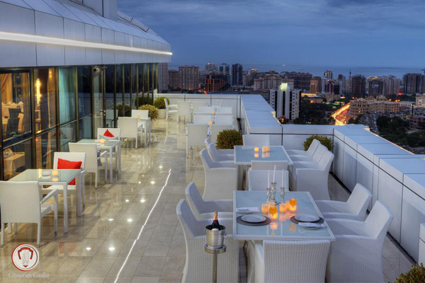 هتل با 20 رستوران و انواع غذاهای سنتی آذری و بینالمللی در اختیار مهمانان است. برای برگزاری هرگونه گردهمایی و مراسم این رستورانها آمادگی کامل خود را برای برگزاری هرچه بهتر مراسمهای شما اعلام میکنند. رستورانهای بزرگ هتل در طبقهی 18 قرارگرفتهاند که چشمانداز زیبایی از دریا و شهر را ارائه میدهند. در فصل تابستان در تراس هر کدام از رستورانها میتوانید اوقات خوشی را داشته باشید. کافیشاپ رستوران نیز در طبقهی 19 همراه با انواع نوشیدنیها و اسنک ها و موزیک زنده برای مهمانان آمادهی پذیرایی میباشد.