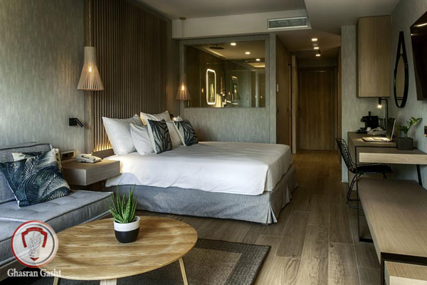 اتاق ها دارای طراحی شهری پیچیده و مجهز به میز کار، مینی بار، گاوصندوق و تلویزیون پلاسما است. حمام ها دارای سشوار و لوازم بهداشتی رایگان هستند. بیشتر واحدها مشرف به به پارک و برخی مشرف به آکروپولیس هستند.