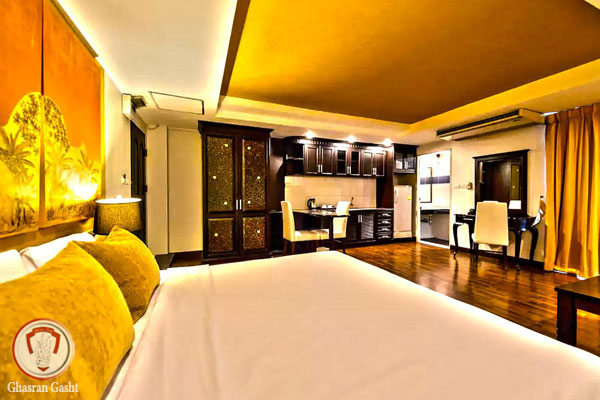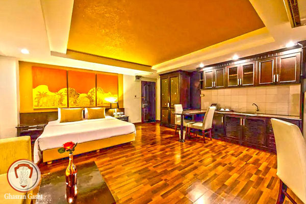 سوئیت های مبله زیبا ، با سبک های مختلفی تزئین شده است ، از نقوش گل های رنگارنگ تا چوب های تیره. سوئیت های مجلل مجهز به چندین امکانات و اتاق نشیمن است که برای پذیرایی از میهمانان مناسب است.