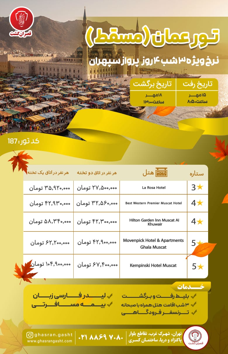 قصران گشت تورهای تجاری عمان را هم اجرا می‌کند.
