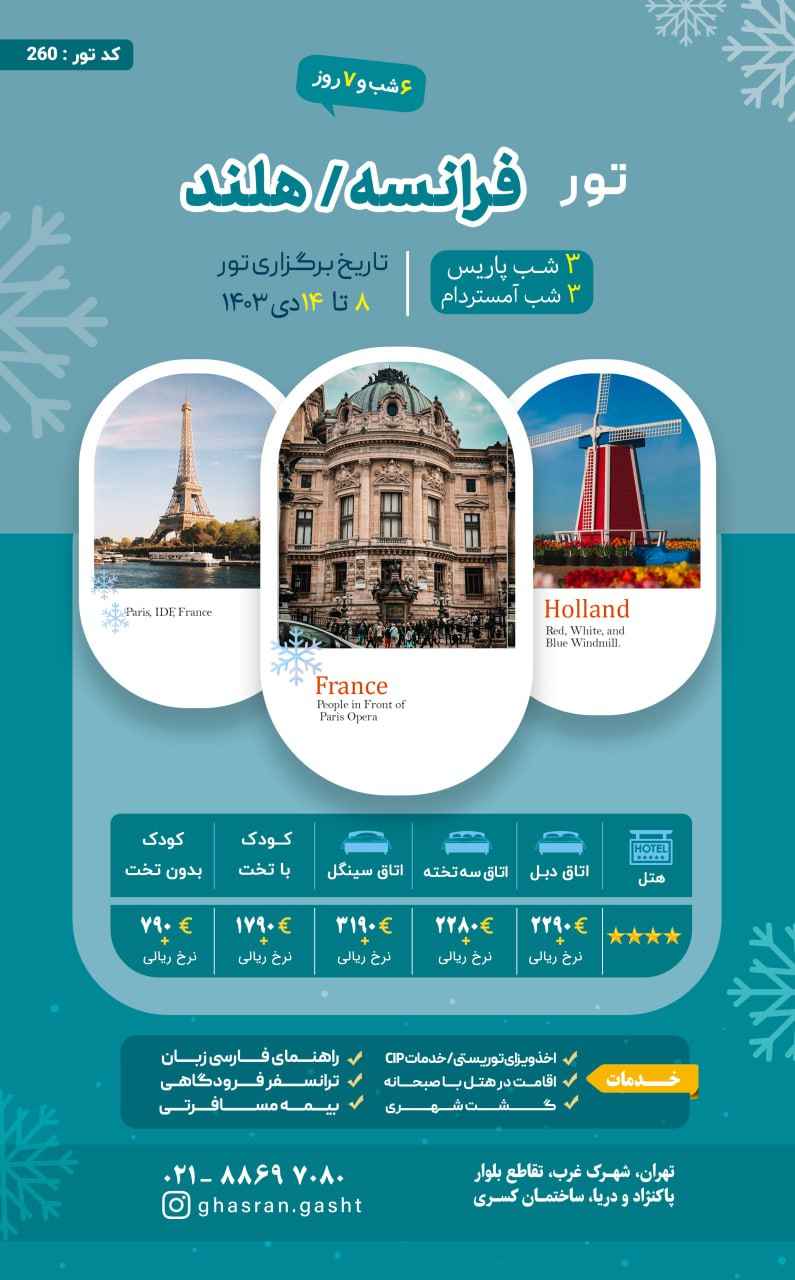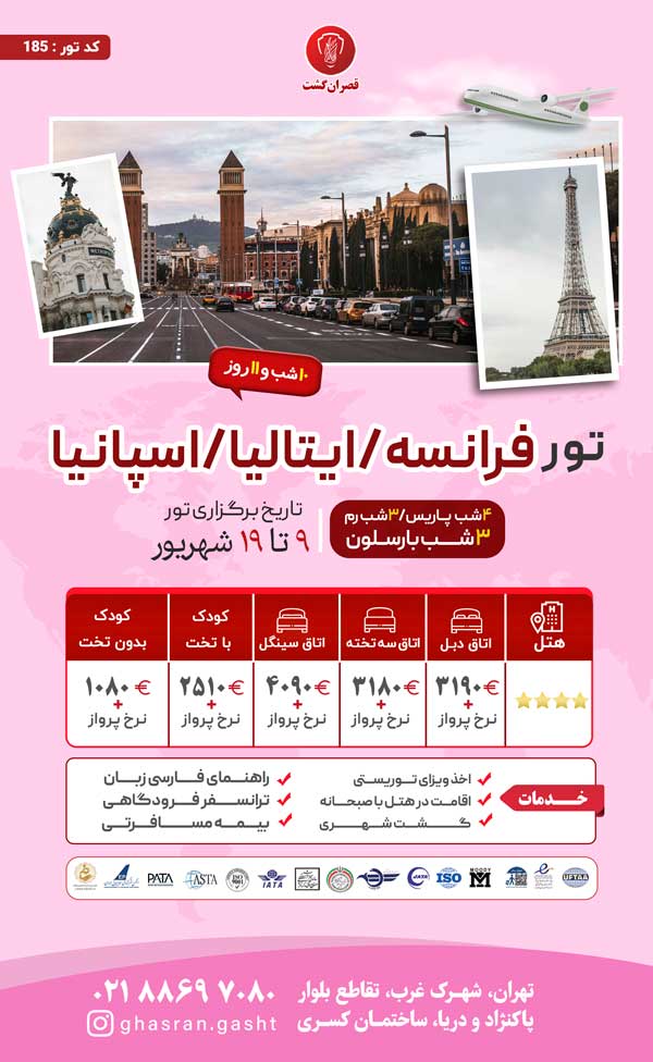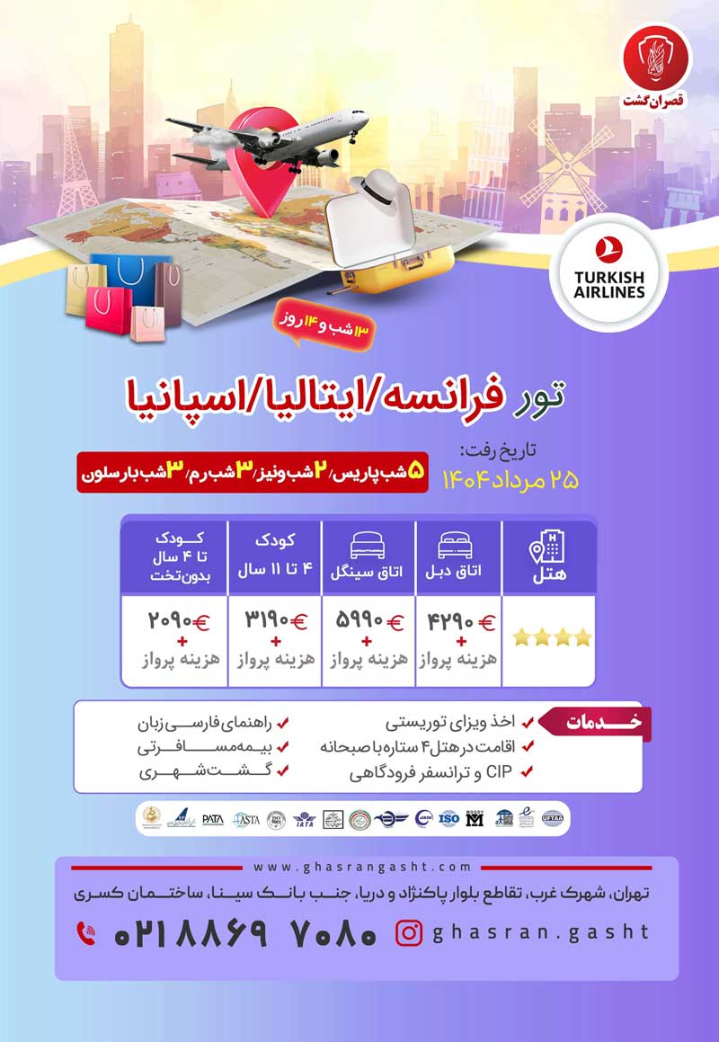 زمان برگزاری این تور 26 مرداد تا 6 شهریور