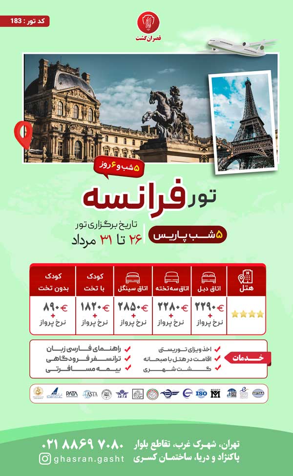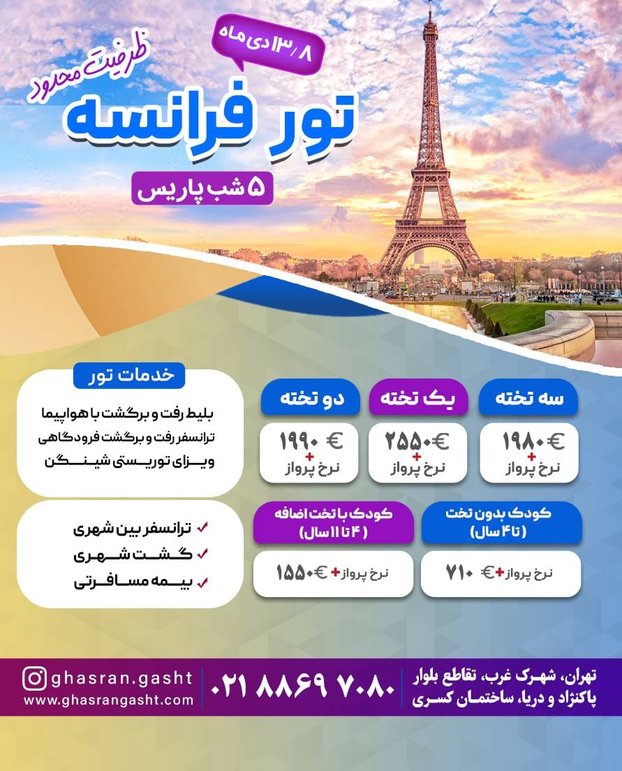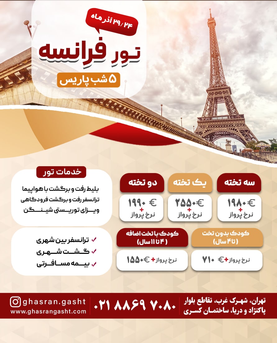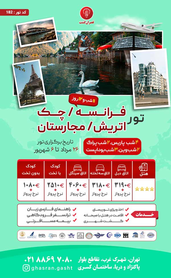 تور فرانسه-چک-اتریش-مجارستان ویژه تابستان