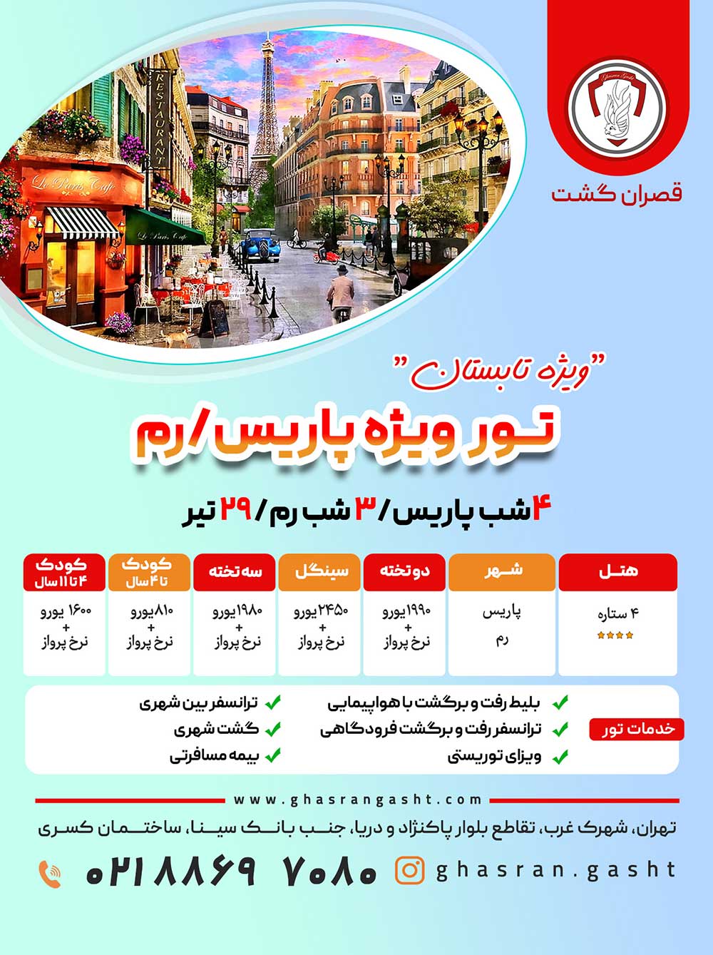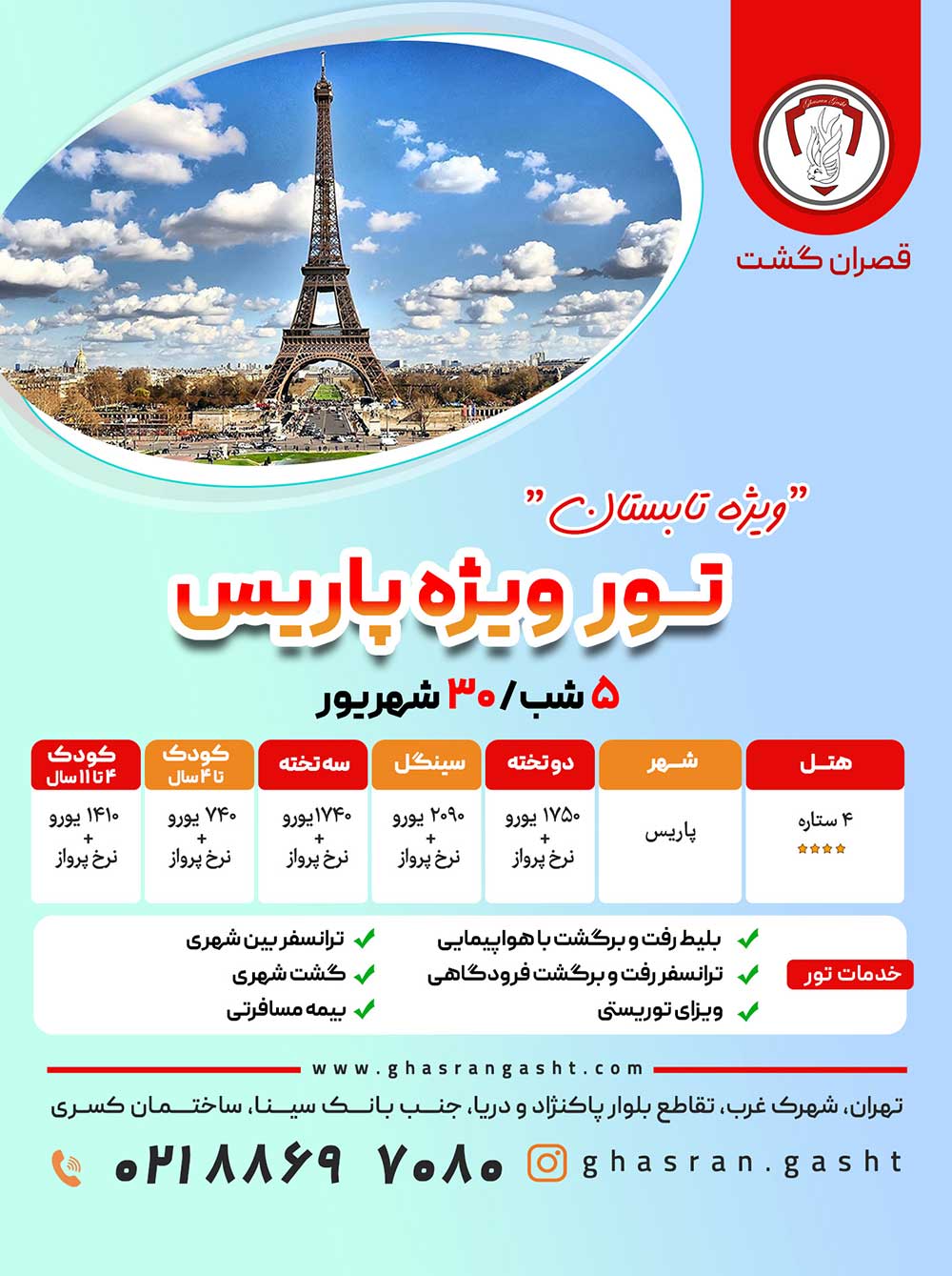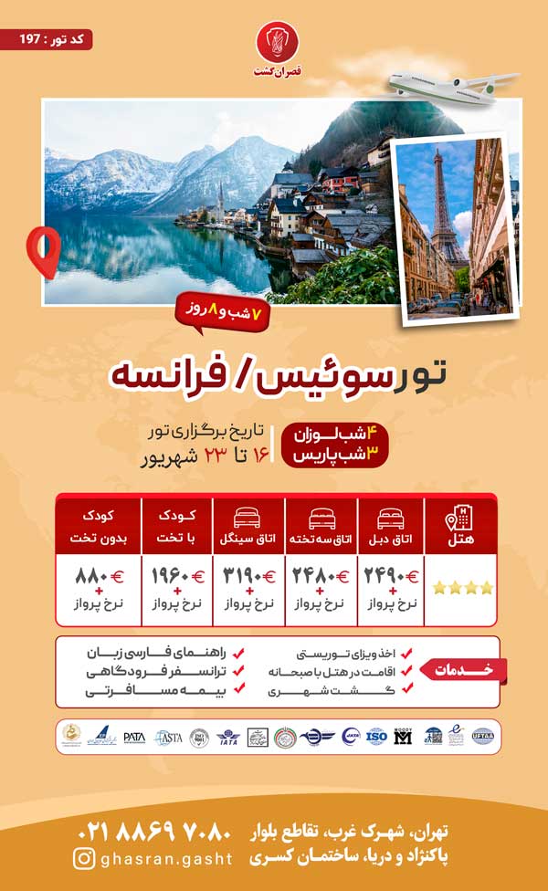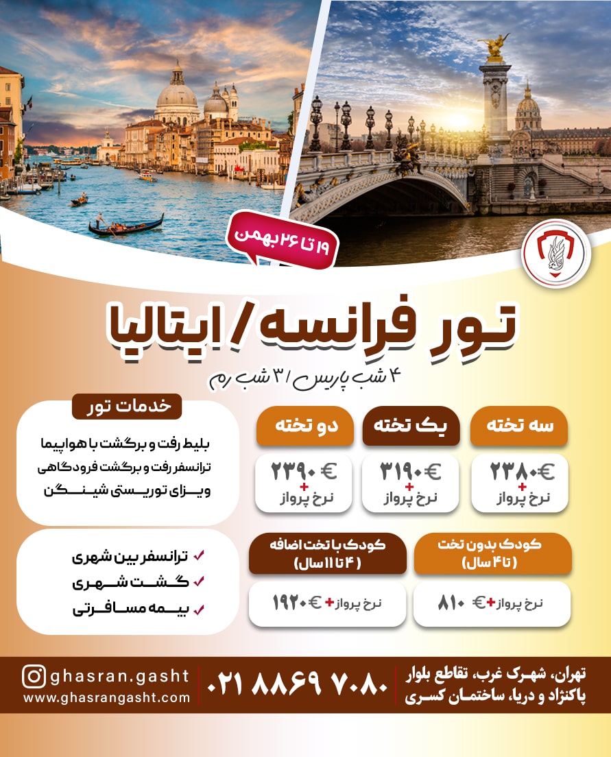 تور فرانسه-چک-اتریش-مجارستان ویژه تابستان
