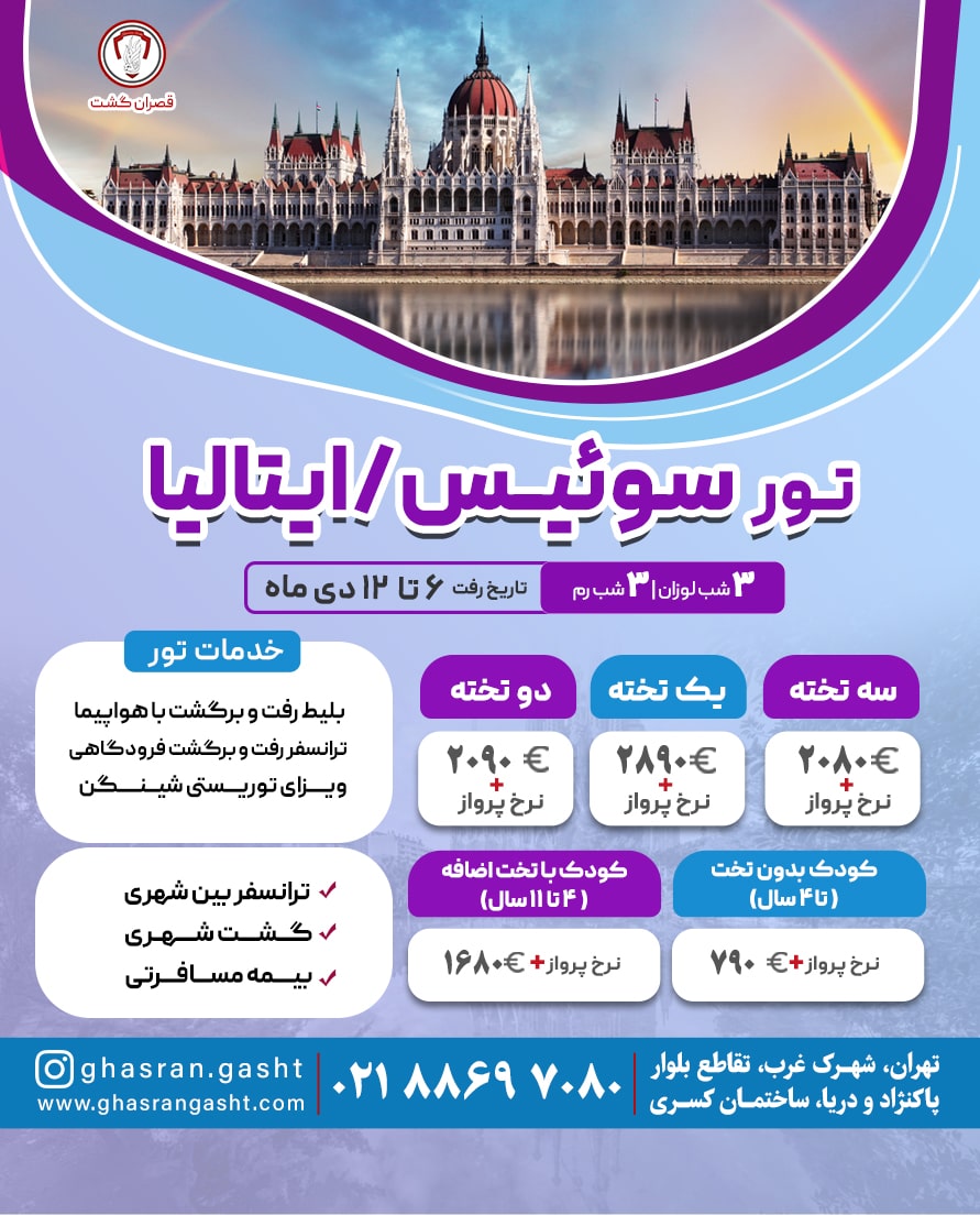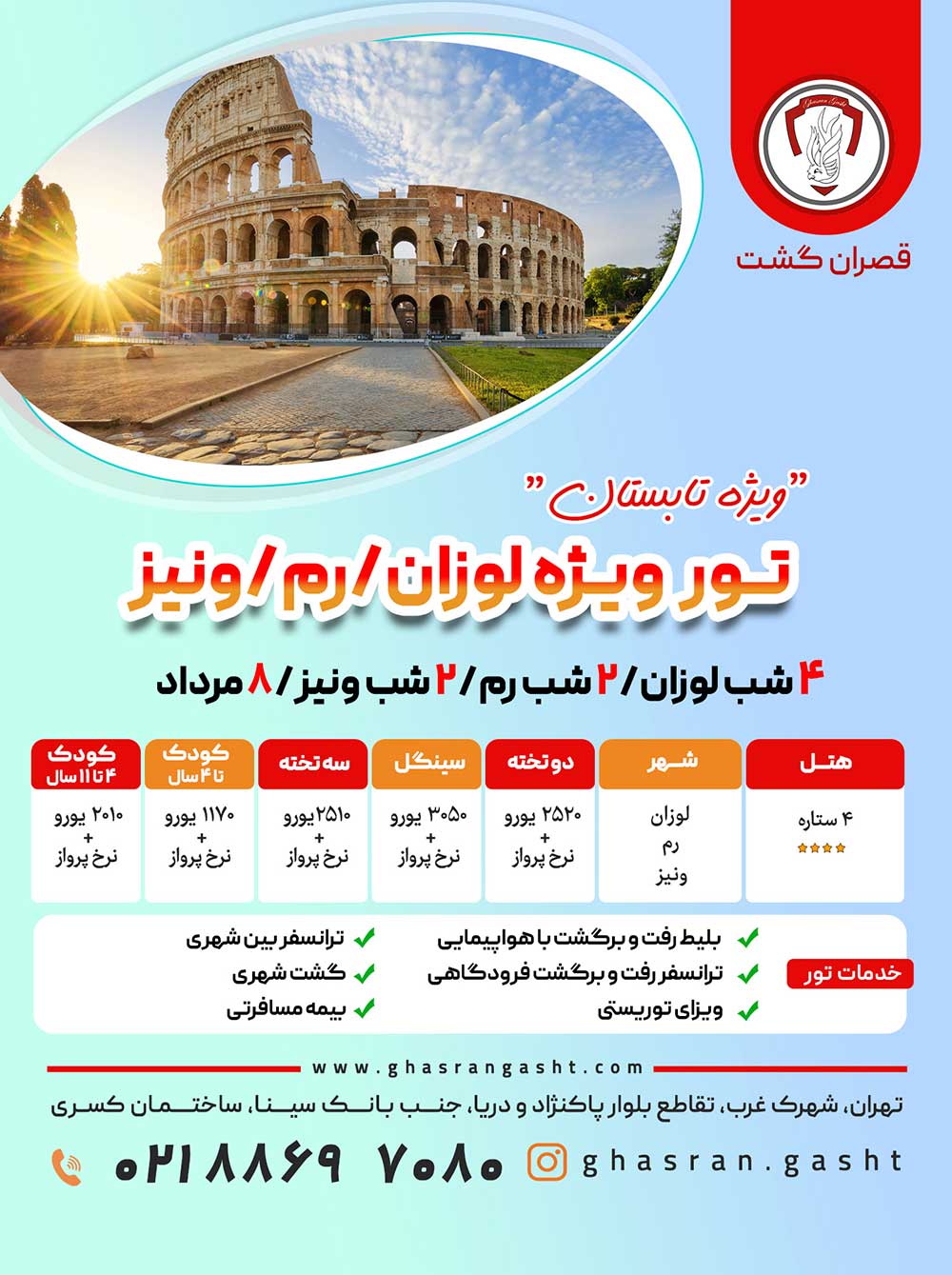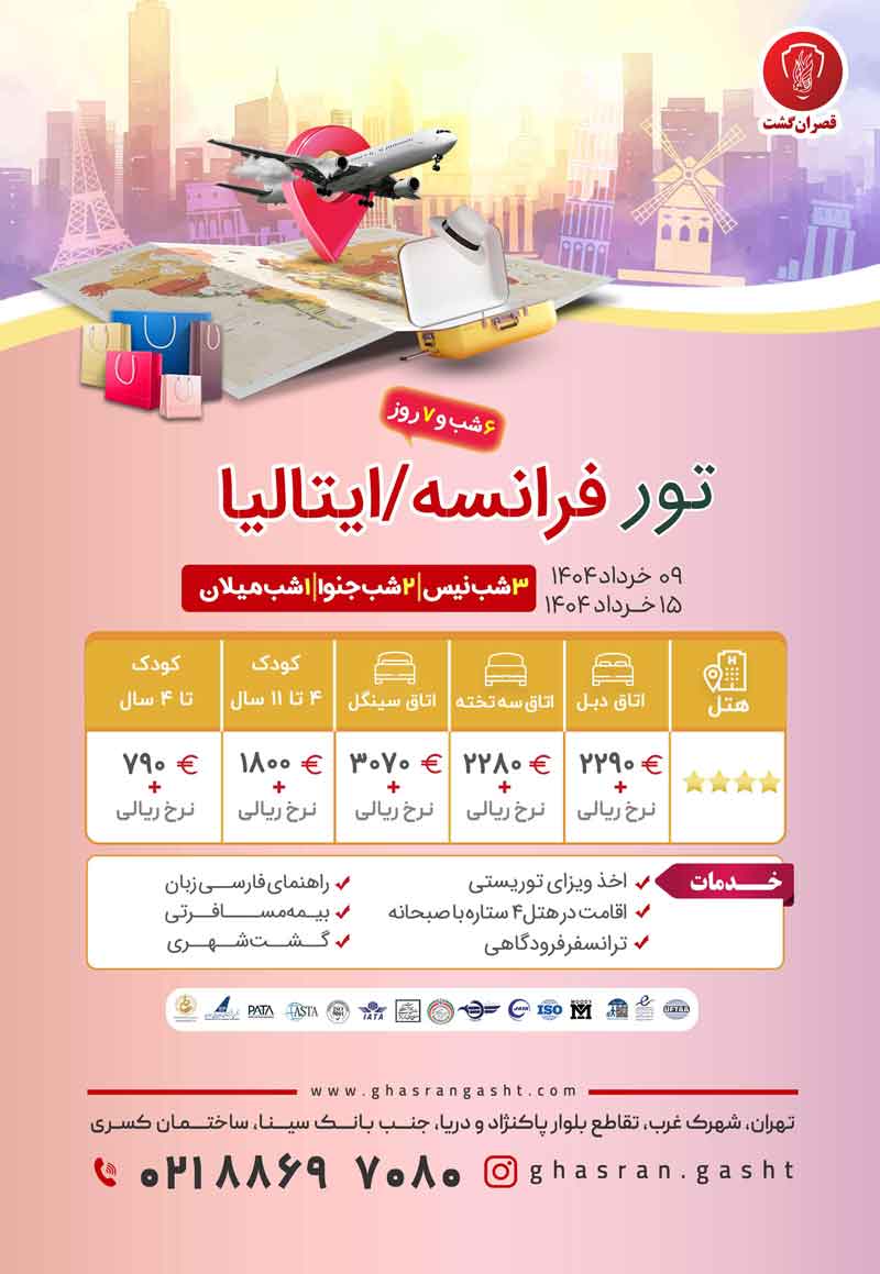 این تور در تاریخ 7 تا 14 دی 1403 برگزار میشود.