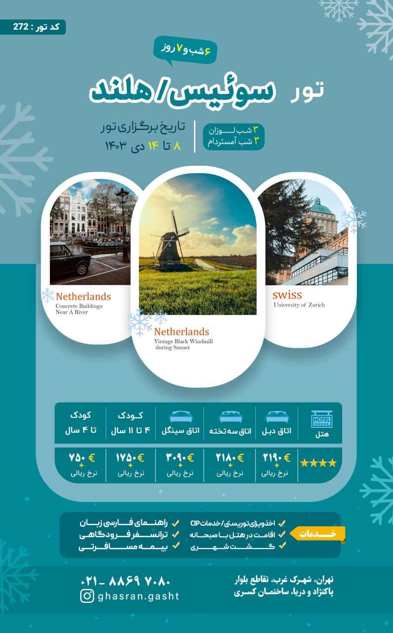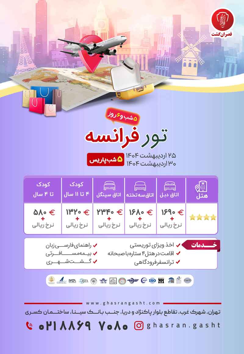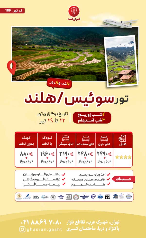 - گروهها: تور اروپا , تور آلمان , تور پاریس , تور هلند ,