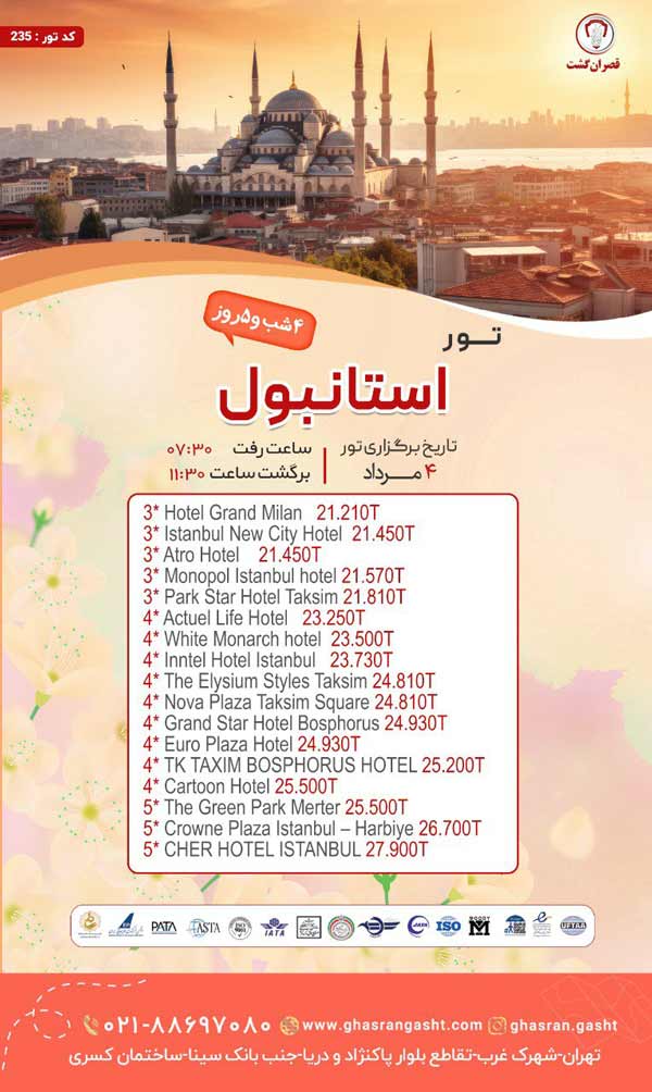 | Cher Hotel Istanbul | 27.900 تومان | --- |