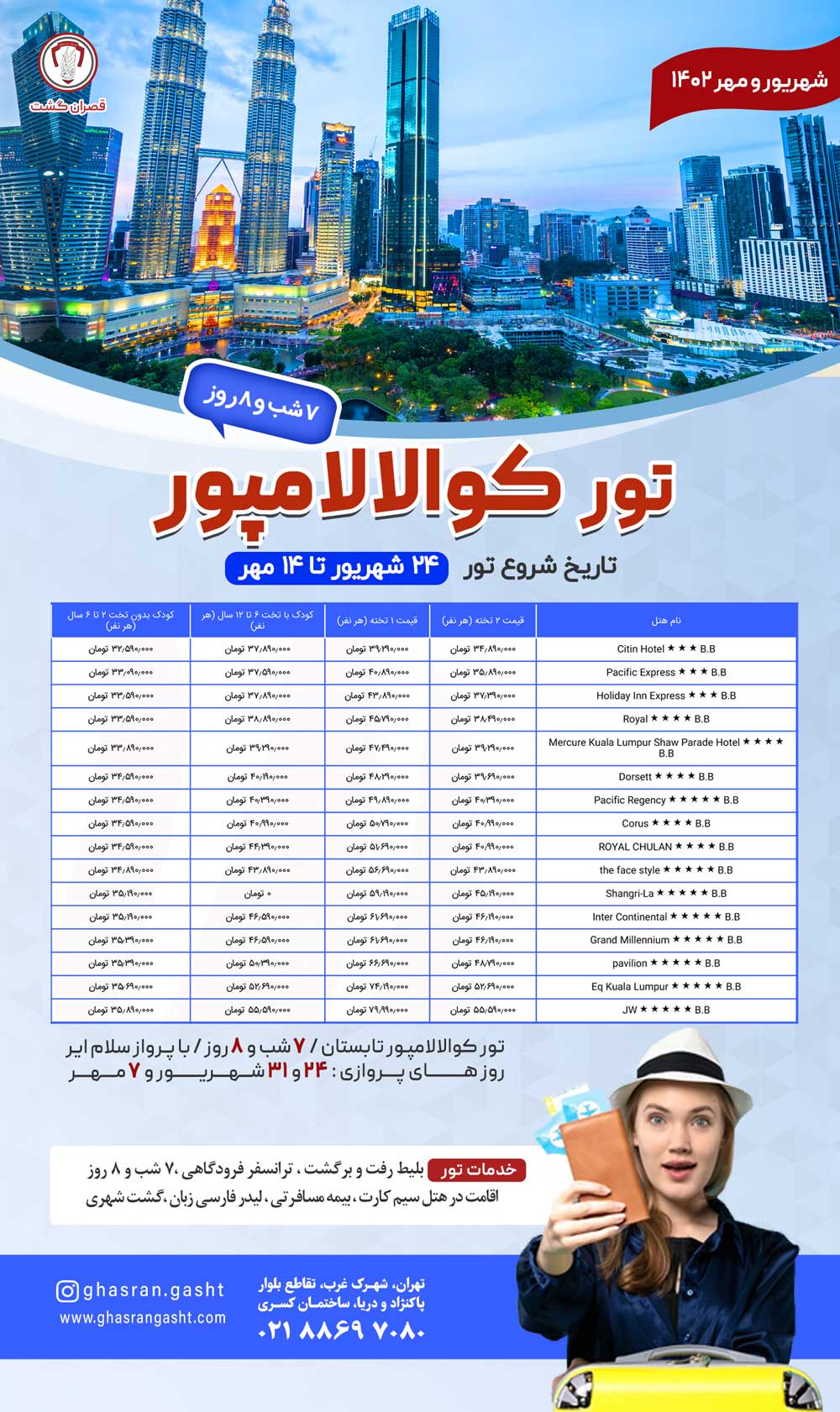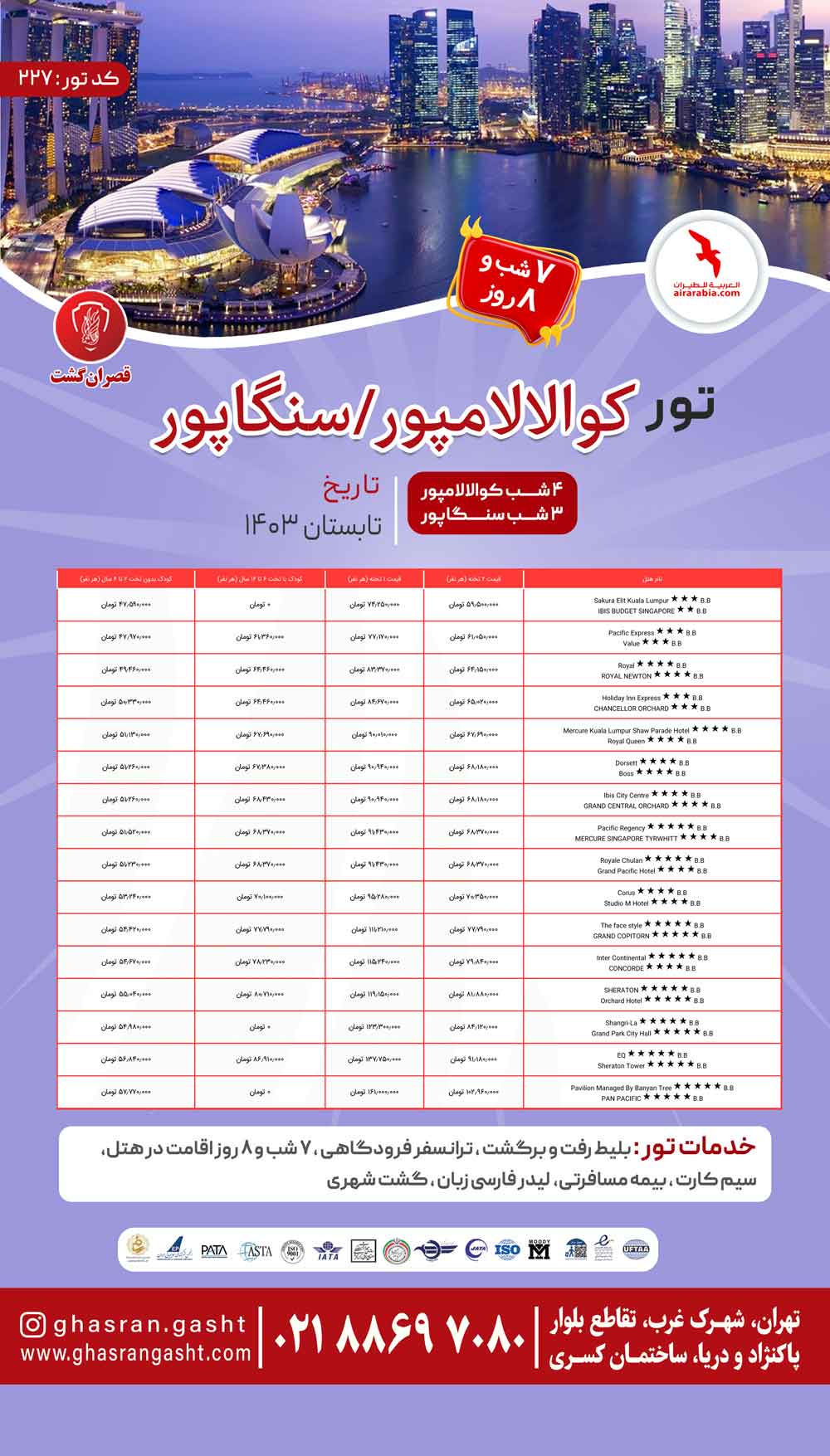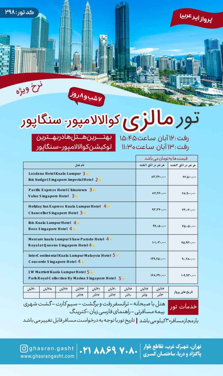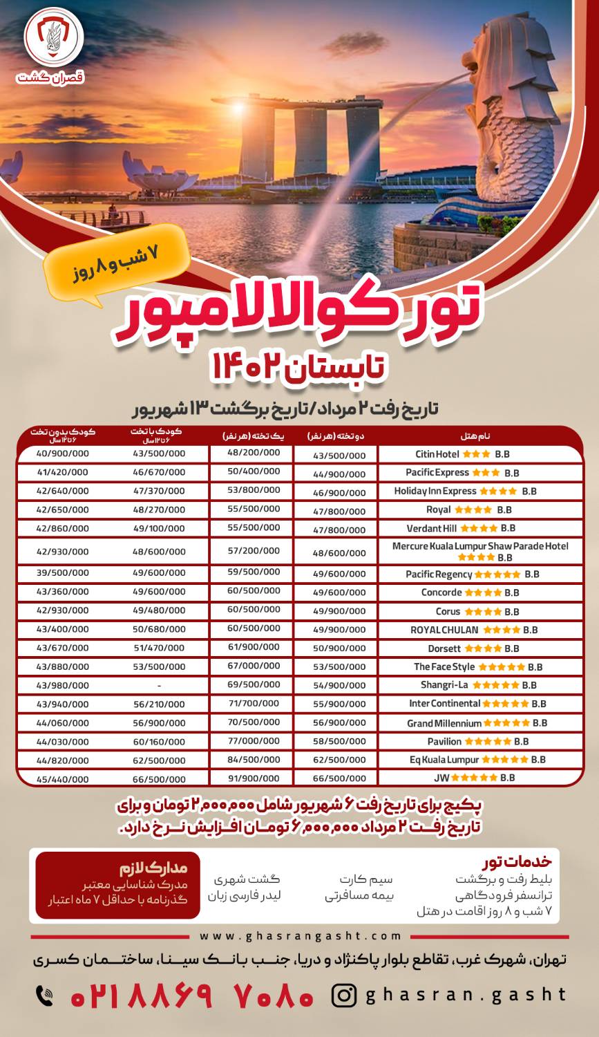 - گروهها: تور آسیا , تور تابستان , تورهای در حال اجرای قصران گشت , تورهای مالزی ,