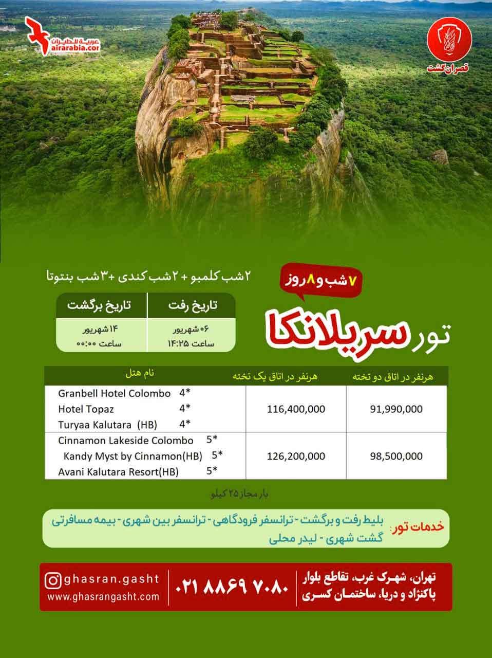 ۲ شب کلمبو + ۲ شب کندی + ۳ شب بنتوتا