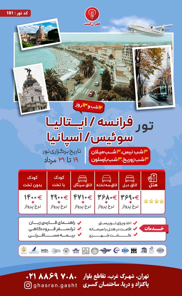 5 شب لوزان | 2 شب میلان | 3 شب رم