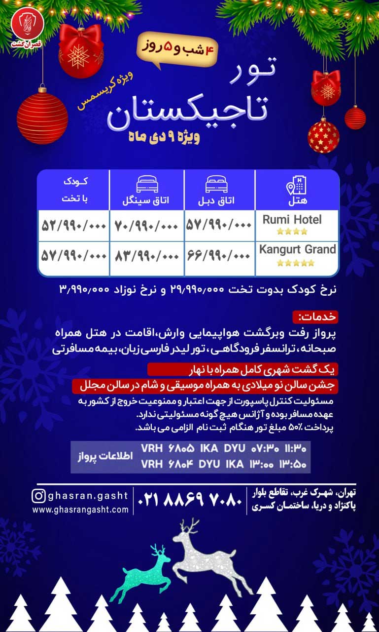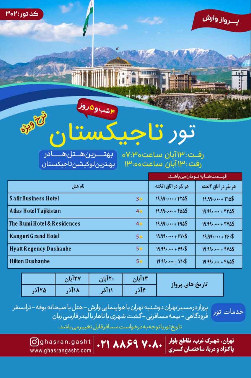 - گروهها: تور اروپا , تور تاجیکستان , تورهای پاییز , تورهای در حال اجرای قصران گشت ,