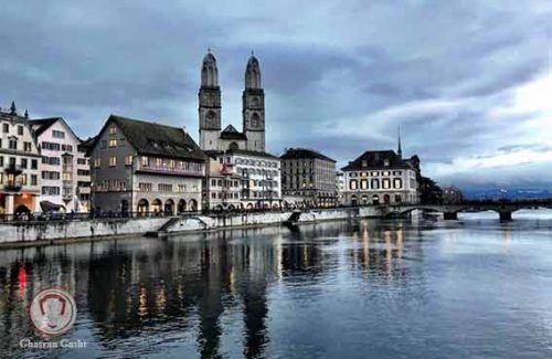 کلیسای مرکزی شهر زوریخ دریاچه زوریخ آبشار Rheinfall